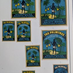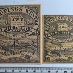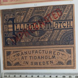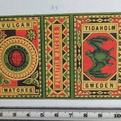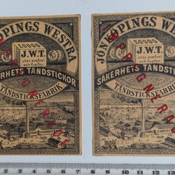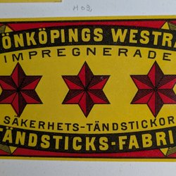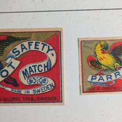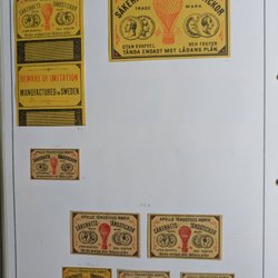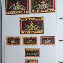 Gamle etiketter til Svenska tændstikæsker.