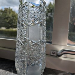 antik slebet krystalvase med rutemønster