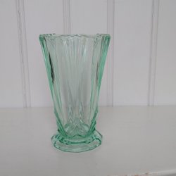 Ældre Grøn Vase i Pressglas på lille Fod Krystal Vintage