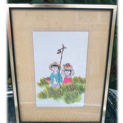 Asien Konst Vintage Asien Konstföremål Træramme og Glas