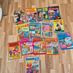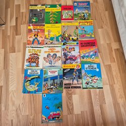 Samling 70'er tegneserier: Lucky Luke, Asterix, Smølferne, helan&halvan m.fl