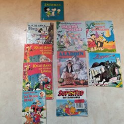 Samling af børnebøger: Snobben, Kalle Anka, Tre Små Grisar, Familjen Flinta