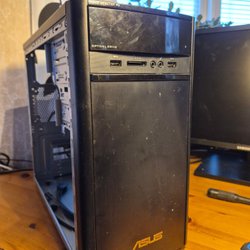 Dator Chassi Asus Atena + moderkort raminne fläktar, svart metall med fönster