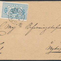 Tj17 Stora Tjänste 12 øre blå T13 stpl. Ousby 30.8.1883