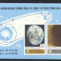 SOVIET 1969 RYMDFARKOST SONDA 6 SONDA 7 - RYMD FÖRSKNING KOSMOS Mi BLOCK 60