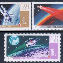 SOVIET 1967 KOSMONAUTERNAS DAG - RYMD FÖRSKNING KOSMOS Mi 3336-3338