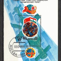SOVIET 1984 - RYMD FÖRSKNING SOJUZ 11 INDISK KOSMONAUT Mi BL 172 STMPL MED GUMMI