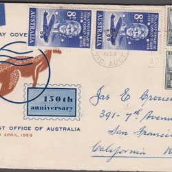 AUSTRALIEN - 1959 - POSTVÆSENETS FØDSELSDAG på FDC + 2 ex FLYPOST