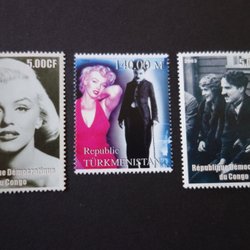 MARILYN MONROE / CHARLE CHAPLIN, Postfriske frimærker, 3 forskellige