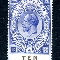 Gibraltar 1925, Mi 90 Ten Shilling ultramarin/sort King George V