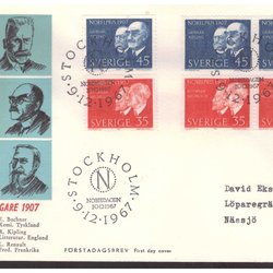 Sverige: FDC 1967 Vignette 1. Nobelpristager 1907. Se billede.
