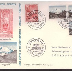 Sverige: FDC 1967 Vinjett 1. Fjället, Uppsala Domkyrka. Se billede.