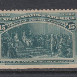 USA Sc 238 Columbus 15c Mørkegrøn Ustemplet let hængslet spor Kv = 1900 kr