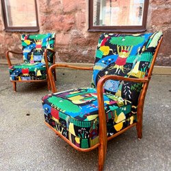 To lænestole i Stig Lindberg ”Lustgården”