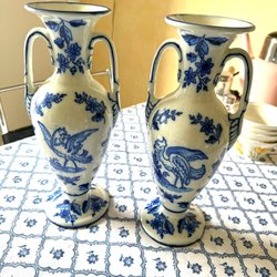 Vaser med blåt fuglemotiv to stykker