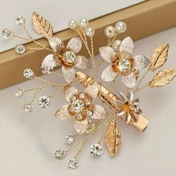Guldfarvet Hårklemme med lyserøde tulipaner. NY