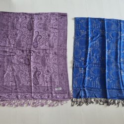 2 vintage PASHMINA sjaler. Lilla paisley og en blå med cirkelmønster