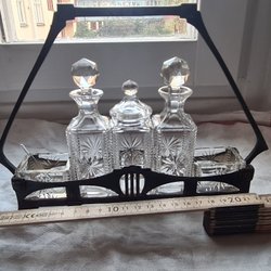 Art Deco / Jugend krydderisæt – slebet glas & metalstativ – ca. 1920–1930