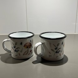 Mine Feldt Två emaljekrus med motiv