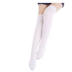Hvid over knæet, til strømpebånd (One Size). Rørsok.