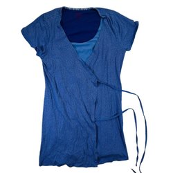 Gudrun Sjödén Top Dame Størrelse Large Blå Bomuld Wrap Kort Ærme