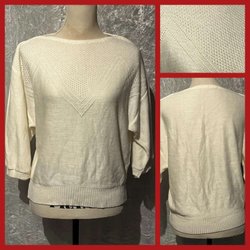 J BY JASPER CONRAN Dame Sweater 44 Creme Farvet Bomuld Finstrik 3/4 ærme Striber