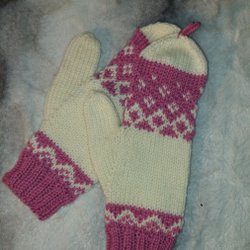 Vanter, dobbeltstrikkede luffer, lyserøde med mønster