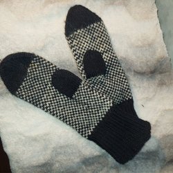 Nye Pied de poule mønstrede Håndstrikkede vanter i blødt uldgarn str. 8