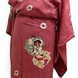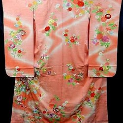 Autentisk japansk vintage kimono, silke, silke, Tsumugi-vævning, blomster, sød, plantefarve, holdbar