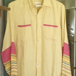 These Glory Days hvid/gul linnedskjorte, størrelse L
