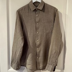 John Henric olivgrøn/khaki linnedskjorte, størrelse 40