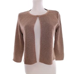 GIRA PUCCINO Dame Knap Cardigan M Brun Finstrikket Ærmeløs
