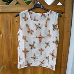 Lækker mønstret top Cremefarvet med kors Stl. XS/S