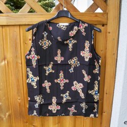 Lækker mønstret top Sort med kors Stl. S Ubrugt