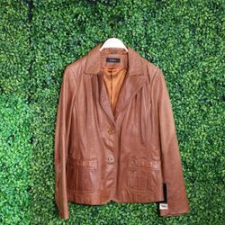 Saki Grace læderjakke cognac str. 40 – elegant jakke i ægte gedeskind!