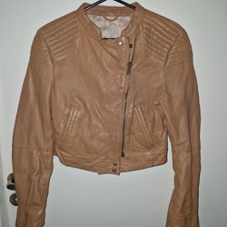 Læderjakke, ægte læder, ubehandlet - str. M/L