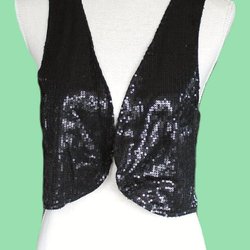 Sort pailletvest, str. XL