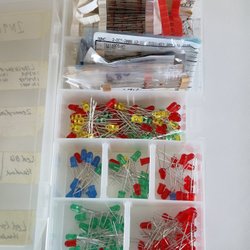 Elektronikkomponenter sortiment med Dioder og Lysdioder