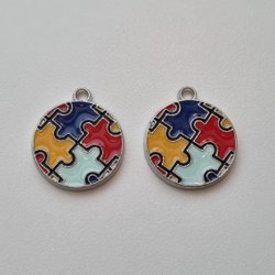 Charm Autism Awareness rund puslespilsbrik (variant 6)