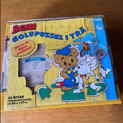 Bamse Gulvpuslespil i Træ, billeder på begge sider.