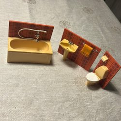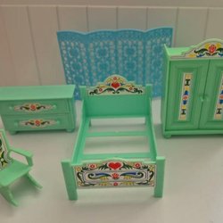 Legetøjsmøbler og service, dukkehuse, dalamotiv