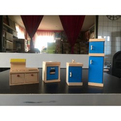Køkkenmøbler til dukkehuse, 3 stk. blå.
