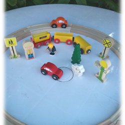 Brio sæt med 10 skinner togvogne træbil gamle mænd and koarbejdere vejskilte
