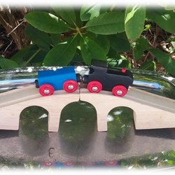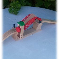 Brio buebro træbro med 1 bue i 2 stykker med tog og vogn vintage Pæn stand