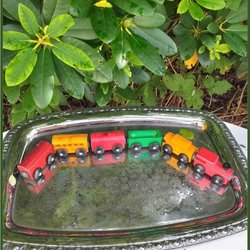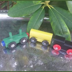 Trætog med 5 vogne i forskellige farver God stand