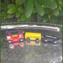 Brio brandbil med 2 trævogne på magneter
