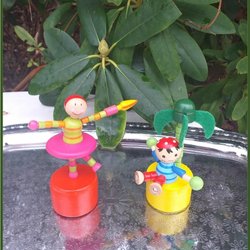 Parret med trykt legetøj træfigur klovn og pirat Økologisk legetøj i fin stand