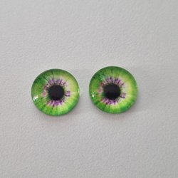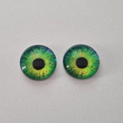 2 drageøjne katteøjne i glas, glasrammer, cabochons (12 mm)