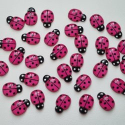 25 mariehøns i harpiks, miniaturer (cerise)