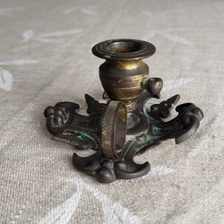 Antik Lysestage Bronze Rigt Dekoreret